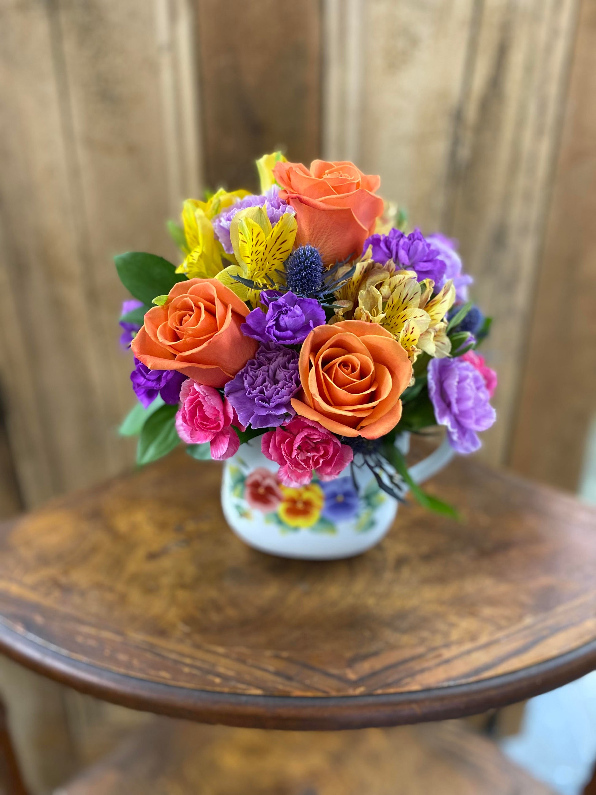 Your order will be crafted using our fresh array of flowers. While the photos showcase styles and sizes, each order is unique, tailored with the occasion and your specific flower and color preferences in mind.